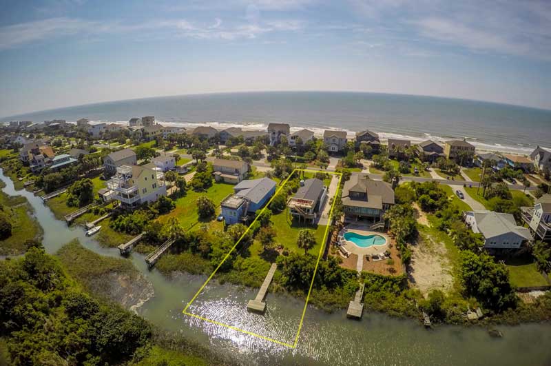 Dog Friendly Folly Beach Vacation Rental Cottage on the Tidal Creek with sunset deck on top of cottage. 2nd Row beach house near Charleston, SC. Pets Accepted with fenced in yard and Kayaks and bikes. Close to beach access.